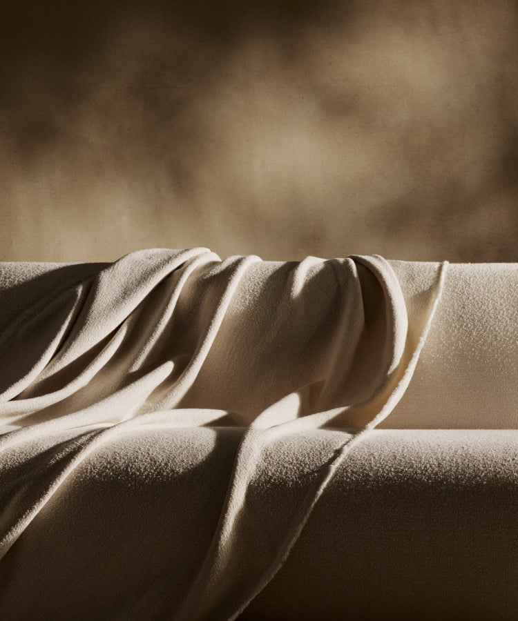 Here, a community of dedicated artisans ensure this meaningful craft is carried forward. Forward faster. And fiercer. In the orchestrated movement of weft threads. Over, then under, the tension-taut warp. Pulling us in as tightly as each woven strand, to listen. To return to this factory floor, loud with the sounds of making. Knowing that these impressive, automated machines still rely on human hands to begin and complete each weaving. In a careful tying of tiny knots by skilled fingers, we see this artistry of ages preserved. A touch that feels essential. And intentional.