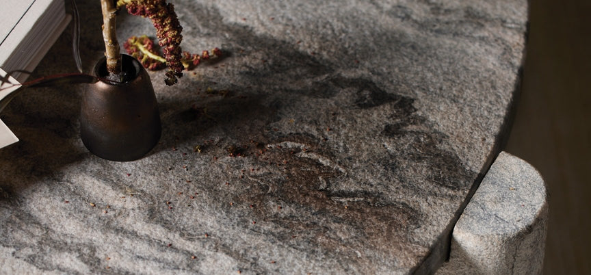 With intertwining tones of grey, white, and brown, every piece crafted from natural stone is unique, radiating elegance and sophistication in any space.