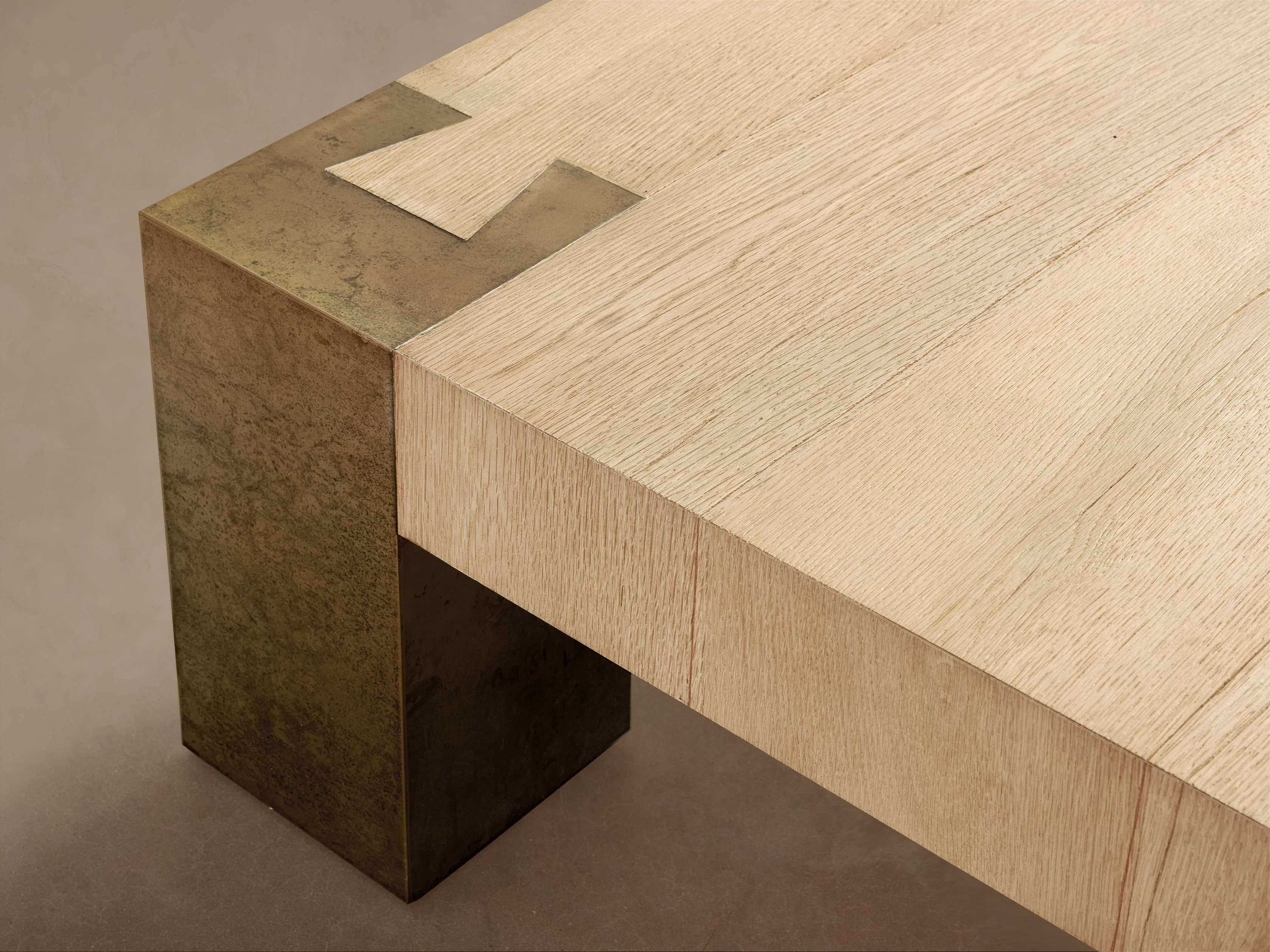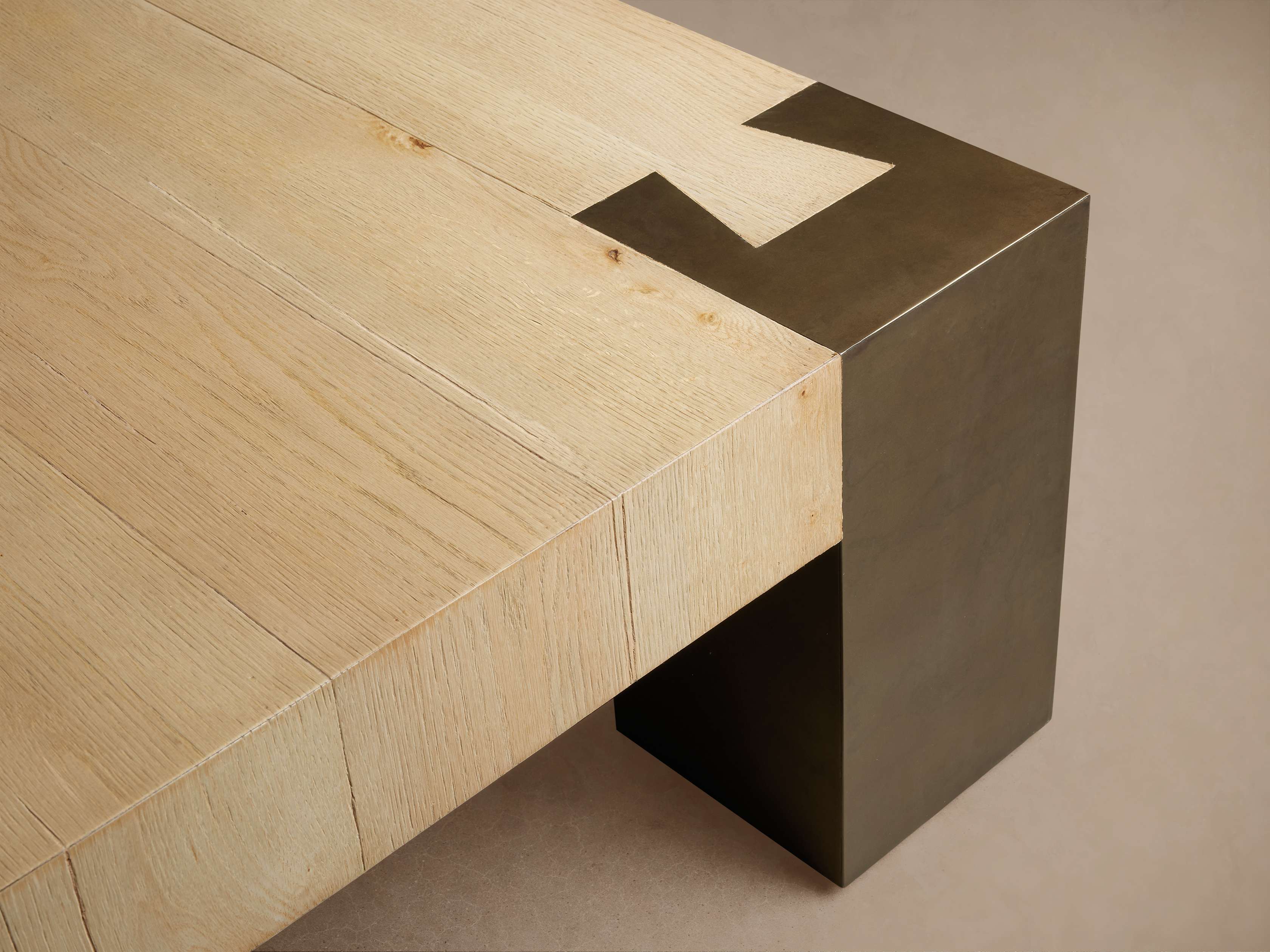 Panels of weathered steel mold around silhouettes of yukas, celebrating organic imperfection.